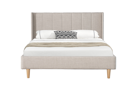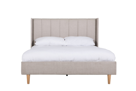 Allegra 6ft Bed in Cashmere, a modern masterpiece for your bedroom. With its channel-tufted headboard and elegant wings, this bed offers a contemporary look. Supported by sprung slats and solid wooden legs, it ensures both comfort and durability. The soft textured fabric adds warmth and luxury to your space.